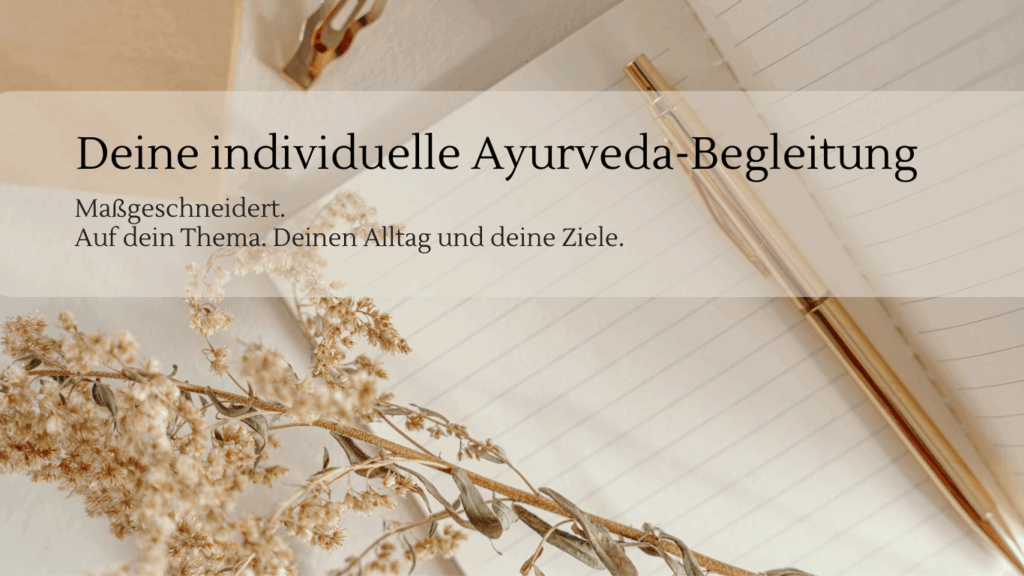 Dann komm zu mir ins Coaching: Wir arbeiten eins zu eins an deiner Gesundheit, deinem Energiehaushalt und deinem mentalen Gleichgewicht – mit individuell angepassten Ayurveda-Impulsen.